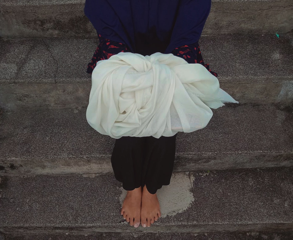 rambutnya terurai tanpa selendang